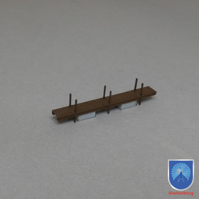 Narrow jetty: c.a. 8B x 60L x 6H mm. Deck above water surface, height c.a. 6mm